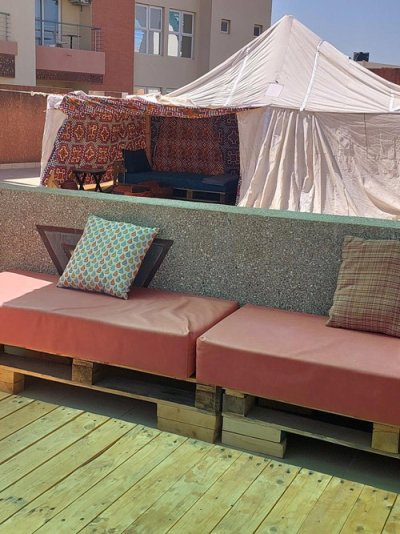 Sur le toit Terrasse Roof top chambre 4 petits lits, ventilés salon terrasse douche à ciel ouvert